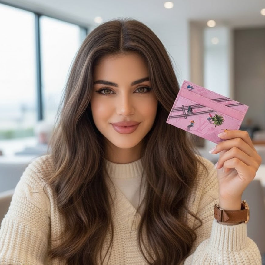 This stylish pink card holder captures the perfect balance of luxury and fun, making it a true statement accessory. Set against the iconic LV monogram, the lively summer street illustrations bring a youthful and vibrant energy to the design. Meticulously crafted from premium materials, it offers both durability and elegance in a slim, practical format that easily fits into pockets or small bags. Perfect for carrying cards and essentials, this piece effortlessly combines playful charm with timeless sophistication — ideal for those who love to stand out with subtle luxury.