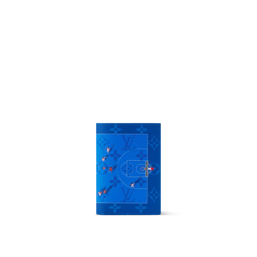 This bold blue passport cover brings a sporty twist to classic luxury. Featuring a detailed basketball court design with playful player illustrations set against the iconic monogram, it’s a perfect blend of fun and sophistication. Ideal for travelers who love unique statement pieces with a touch of athletic flair.